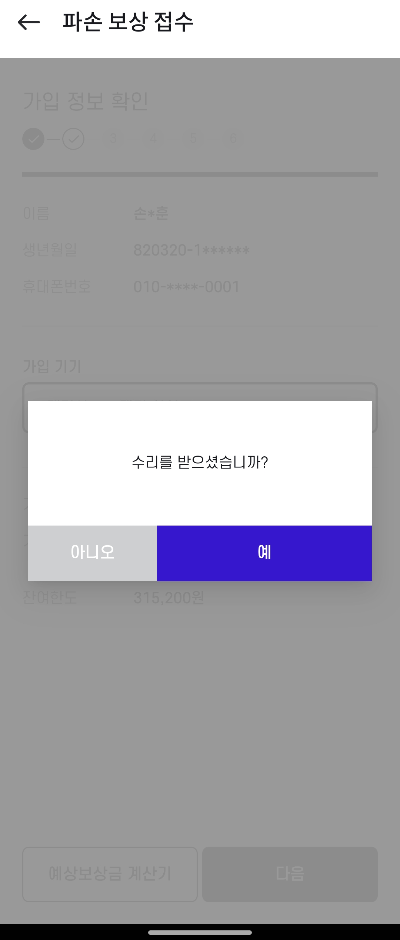 하지만 5분 뒤 보상승인과 보상금 입금까지 완료가 되었다. 어찌 됐든 파손보험의 모든 절차가 완료된 것이다.